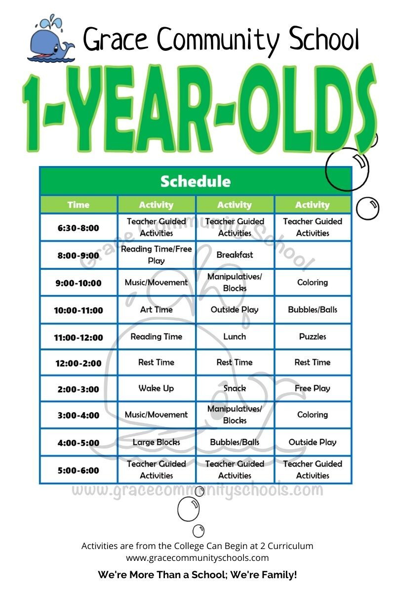 Here you’ll find all of our Grace Community School classroom schedules by age group showing all the fun, learning activities, meal and rest times, and more. Activities are from the College Can Begin at 2 Curriculum and go along with each week’s theme. Want to know which particular theme week it is right now? Check out the Grace Community School online calendar!