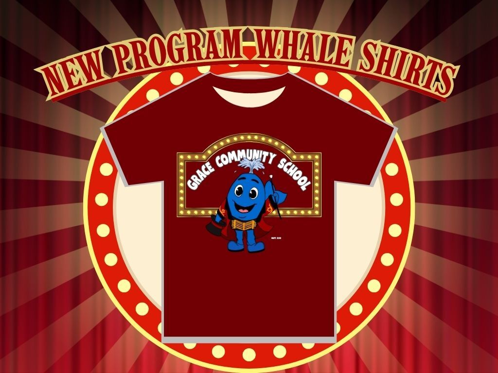 The dress code for the show is the new Grace Community School The Greatest Show! Whale Shirt and a dark bottom.