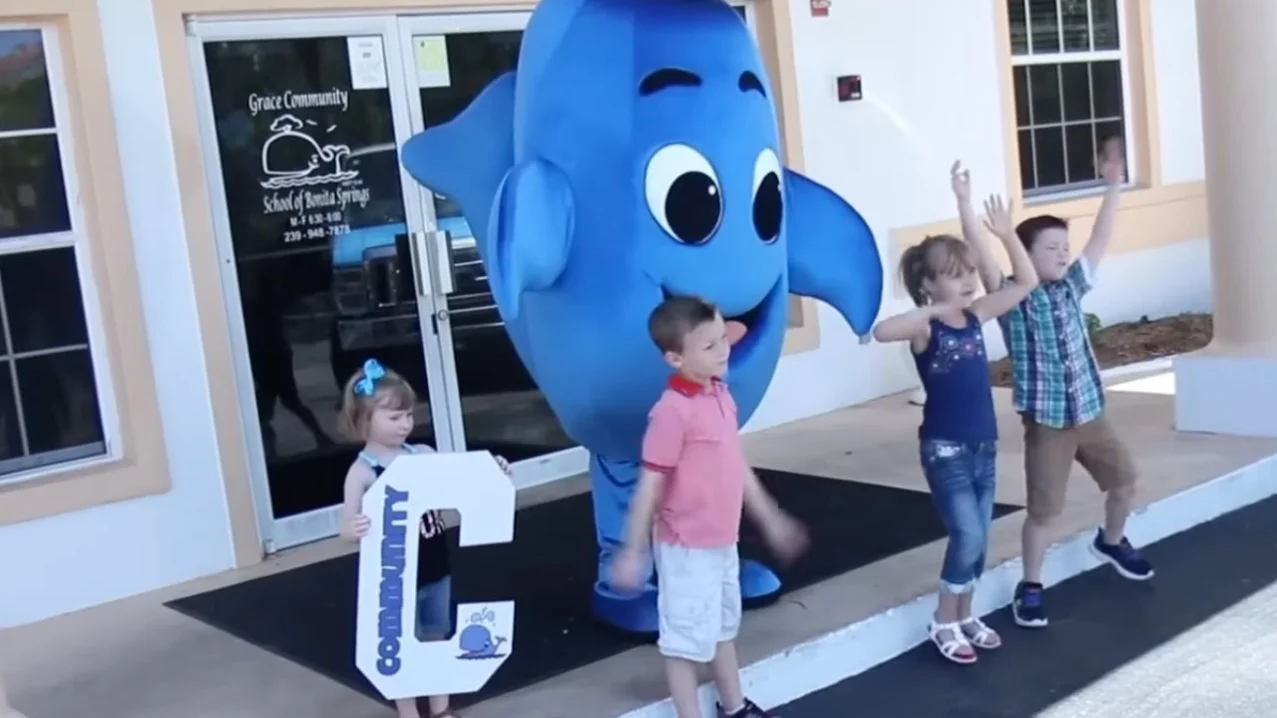 Gracie the Whale is the official mascot of Grace Community School. She loves kids, teaching them how to read, having fun, swimming, and especially going to our twice-annual musical shows to watch the kids perform. Gracie is a very important part of our school family. She helps make our school a fun and safe place for everyone.