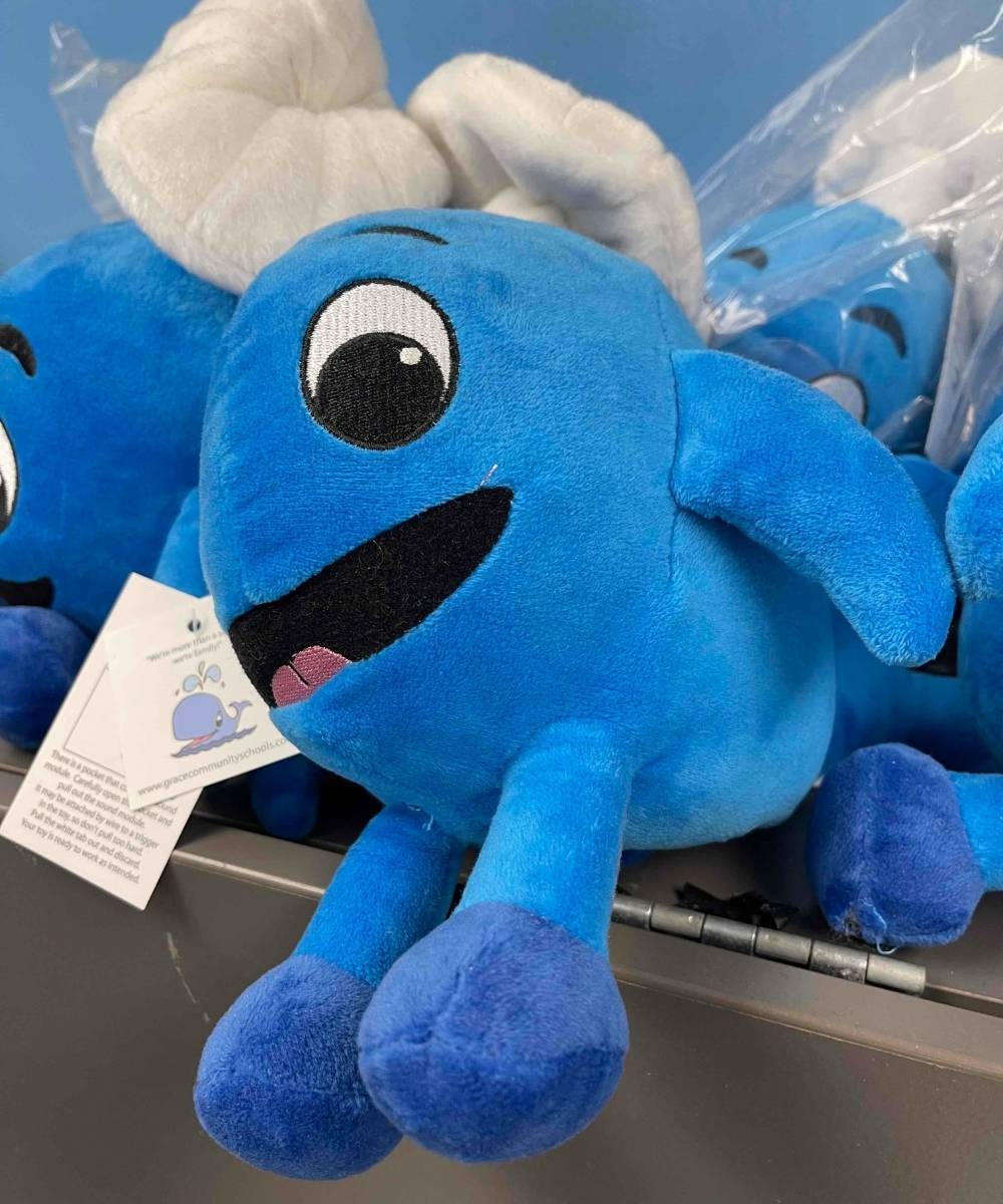 Gracie the Whale is available for meet-and-greets at our musical shows and other school events. Check our website or social media for upcoming events where you can meet Gracie and get your picture taken with her! She also has been known to make surprise visits to our locations, especially around her birthday (It’s February 3!). So keep your eyes peeled for Gracie the Whale when you’re at Grace Community School.