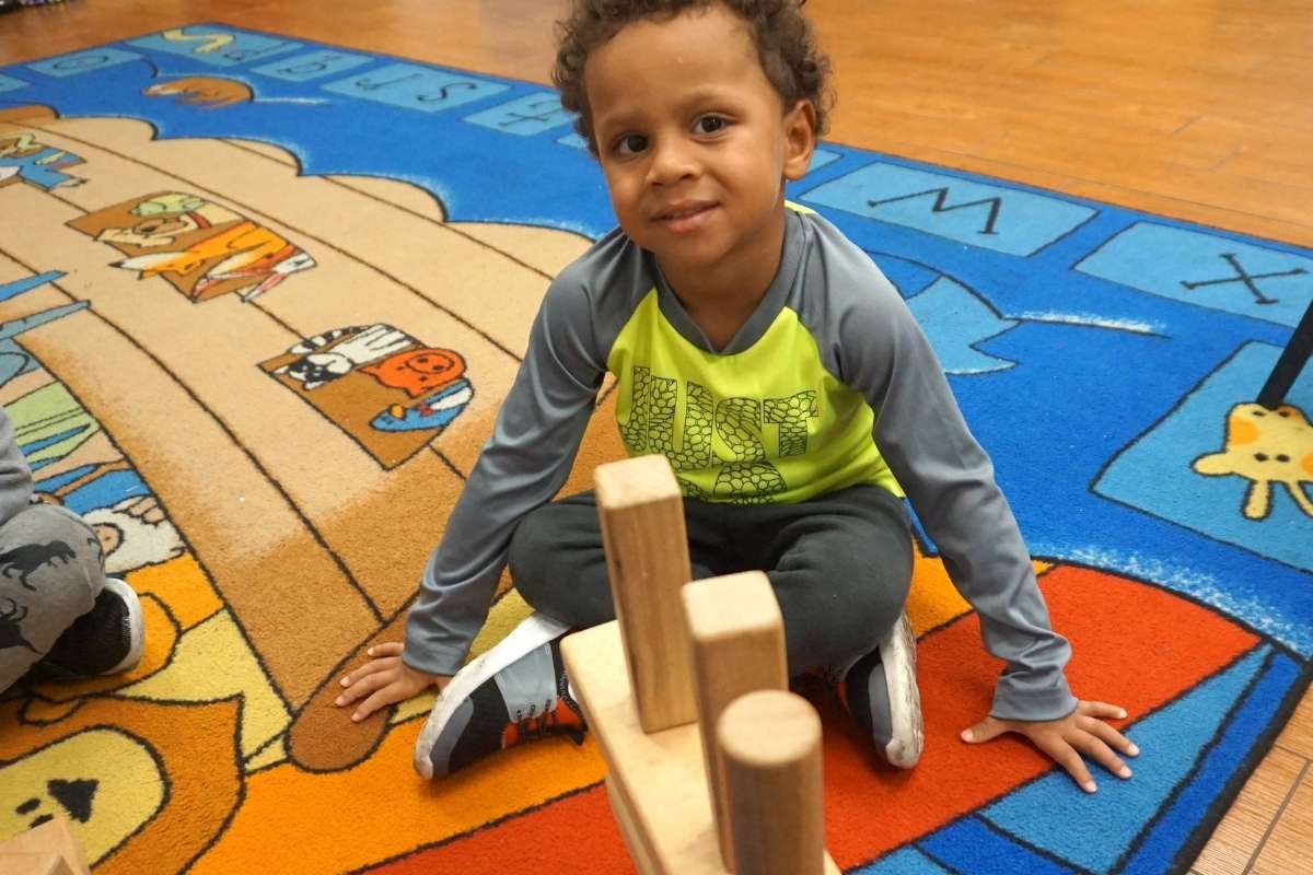 Our four-year-old class is set up for learning! Classroom furniture divides the room into centers and interest areas including phonics-reading, math, art, blocks, science, and dramatic play. Kids can choose which activity to do first on their own during free time. Quiet areas let students read or participate in other peaceful activities without other children intruding. Colorful rugs help to create an inviting environment.